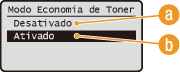 <Ajuste/Manutenção>    <Modo de Economia de Toner>    Selecione <Ativado>