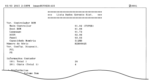 Definindo a lista de menu) e as configurações atuais registradas na máquina, como o tamanho e o tipo de papel. Você também pode verificar as informações de configuração para <Configurações de Rede> e <Config. de Gerenciamento do Sistema> que não estão incluídas na Lista de Dados do Usuário (