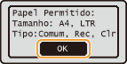 Verifique se o tipo e o tamanho de papel exibidos na tela estão carregados na máquina e pressione
