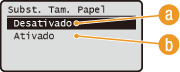 <Tam. do Papel Padrão> e <Tipo de Papel Padrão> não podem ser especificados separadamente. Especifique o tamanho do papel na tela <Tam. do Papel Padrão> e depois especifique o tipo de papel na tela <Tipo de Papel Padrão>.
