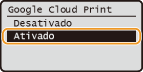 Se você deseja desativar a função Google Cloud Print, selecione <Desativado>.
