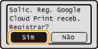 Você também pode registrar a máquina a partir de um dispositivo móvel ou do Google Chrome*. O visor da máquina mostrará a tela de confirmação a seguir antes de concluir o registro. Pressione <Sim> para concluir o registro.