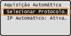 e defina ambos <Selecionar Protocolo> e <IP Automático> para <Desativado>. |