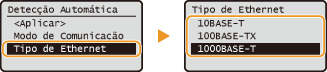 selecione <10BASE-T> , <100BASE-TX> ou <1000BASE-T> .![]() |