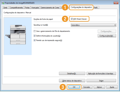Selecione a caixa de seleção [500 Sheet Drawer]