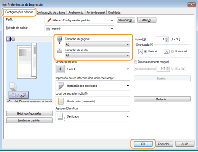 Selecione o tamanho do papel em [Tamanho da saída]