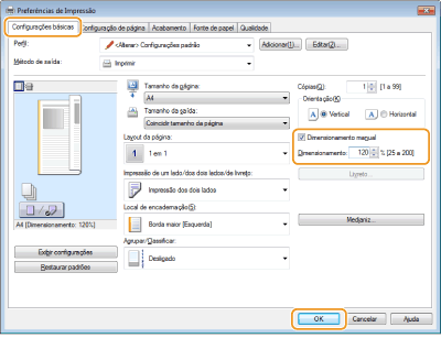 As configurações de ampliação/redução em alguns aplicativos possuem prioridade sobre as configurações do driver de impressora.