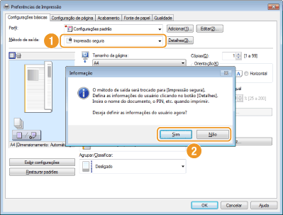 Selecione [Impressão segura] no [Método de saída].