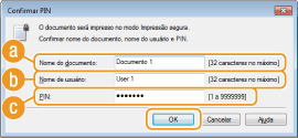 Verifique o nome do documento, nome de usuário e PIN e clique em [OK].