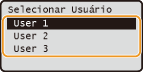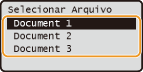 Se documentos protegidos de dois ou mais usuários estão sendo mantidos na memória, a tela <Selecionar Usuário> é exibida antes da tela <Selecionar Arquivo>. Use