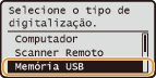 .Os dados digitalizados são salvos no dispositivo de memória USB.