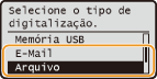 para selecionar <E-Mail> ou <Arquivo> e pressione