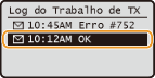 Quando <Exibir Log do Trabalho> é definido como <Desativado>, você não pode verificar os registros dos documentos enviados.