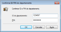 Selecione a caixa de seleção para exibir a tela pop-up [Confirmar PIN/ID do departamento] cada vez que você imprimir ou enviar um fax de um computador. [Autenticar ID/PIN do departamento no dispositivo]