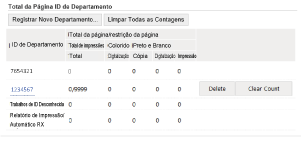 Se você deseja zerar os contadores, clique no link do texto correspondente e clique em [ID de Departamento:] e clique em [Limpar Contagem]