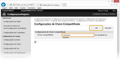 Insira até 24 caracteres alfanuméricos para a chave pré-compartilhada e clique em [OK].