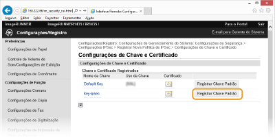 Clique em [Registrar Chave Padrão] à direita de um par de chaves que você deseja usar.