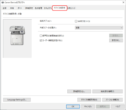 この設定でドライバーはデバイスの機能を使用し、正しく印刷できるようになります。