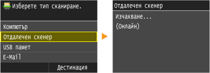 Изберете ScanGear MF или WIA. Ако изберете ScanGear MF, можете да конфигурирате по-сложни настройки за сканиране.