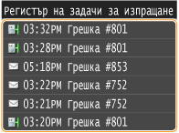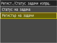 Когато за <Извеждане на регистър на задачи> е зададена настройка <Изкл.>, не можете да проверявате регистрите за изпратени документи.