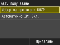 и за двете настройки <Избор на протокол> и <Автоматично IP> задайте <Изкл.>. |