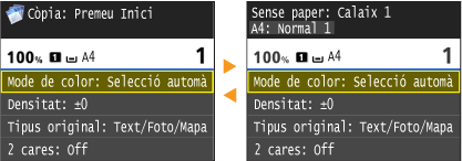 <Opcions de paper>Mostra una pantalla per especificar opcions de paper. Càrrega de paper