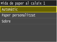 Per al paper que no es reconegui automàticament, com ara LGL o EXEC, especifiqueu el paper amb <Llista 1 de mides de paper per a reconeixement> o <Llista 2 de mides de paper per a reconeixement> prèviament.