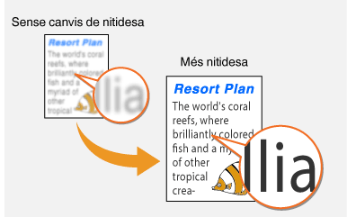 Podeu millorar la nitidesa del text i les línies borroses i fer que les fotos siguin més atractives. Augmenteu la nitidesa perquè el text i les línies que siguin borrosos es vegin més nítids o reduïu-la per millorar l'aspecte de los fotografies de revistes.