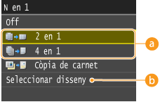 L'ús de <2 en 1>/<4 en 1> redueix l'escala de còpia automàticament (aquest valor es mostra a la pantalla). Podeu augmentar o fins i tot reduir encara més l'escala de còpia abans de prémer