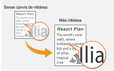 Podeu ajustar la nitidesa de la imatge abans d'enviar el document. Augmenteu la nitidesa perquè el text i les línies que siguin borrosos es vegin més nítids o reduïu-la per millorar l'aspecte de los fotografies de revistes.