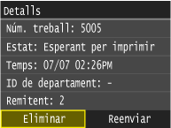 Si s'ha especificat una hora perquè la funció es desactivi, els documents s'imprimeixen automàticament a l'hora especificada.