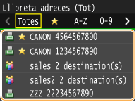 Per conèixer les instruccions d'ús de la Llibreta d'adreces, vegeu Especificació des de la llibreta d'adreces (fax).