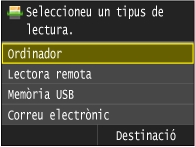 Abans de llegir des de l'equip, heu de configurar les opcions de l'equip i de l'ordinador. Repetiu els passos següents.