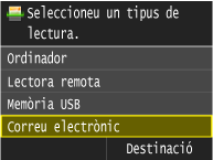 La Llibreta d'adreces us permet especificar una destinació seleccionant-la d'una llista de destinacions desades o cercant per nom les destinacions amb els noms dels destinataris. També podeu especificar directament una destinació introduint un número de tres dígits (número de marcatge codificat) assignat a una destinació.