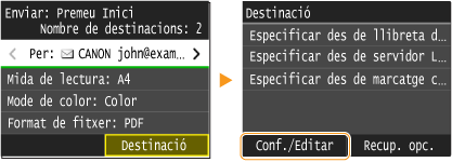 Si voleu eliminar destinacions de manera ràpida i fàcil sense visualitzar una llista de destinacions.Abans de tocar <Conf./Editar> al pas 1, podeu tocar