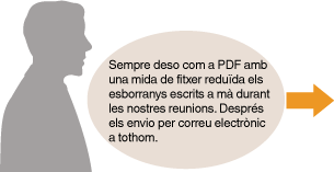 Deseu les adreces de correu dels assistents i el format de fitxer com una combinació de <PDF (Compacte)> a <Opcions favorites>. Després podeu utilitzar aquesta combinació d'opcions sempre que us calgui. Desament d'opcions de lectura utilitzades freqüentment (correu electrònic/carpeta compartida/servidor de fitxers)