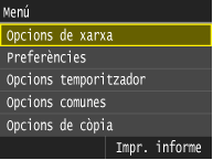 Es mostra una llista de totes les opcions de la xarxa amb descripcions breus. Les opcions predeterminades estan marcades amb una daga (