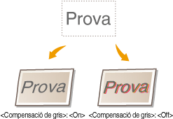 Combinades amb determinades opcions, les dades en negre i gris amb el percentatge equivalent d'RGB poden imprimir-se només amb el tòner negre (K), fins i tot si està seleccionat <Off>. Aquests són alguns exemples.