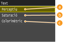 Si se selecciona <Cap> per a <Perfil d'origen RGB> o <Perfil de simulació de CMYK> i l'equip rep una definició d'espai de color dependent del dispositiu amb el color processat des de l'ordinador amfitrió, aquesta opció no s'aplica.