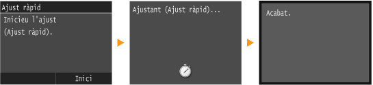 Aquest ajust manté l'estat optimitzat adquirit amb l'<Ajust complet>. Tingueu en compte que no podeu fer aquest ajust mentre utilitzeu algunes funcions, com ara llegir i imprimir. Si el resultat d'aquest ajust no és satisfactori, realitzeu l'<Ajust complet>. És possible que aquest ajust es realitzi automàticament després de substituir un cartutx de tòner.