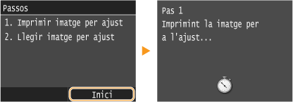 La imatge de l'ajust es llegeix i s'inicia l'ajust. Un cop passats uns 10 segons s'imprimirà la segona imatge de l'ajust.