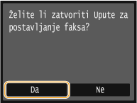 Ako ste na zaslonu postavljanja faksa ( Registriranje broja faksa i naziva) prethodno odabrali <Postavi kasnije>, dodirnite <Izbornik>  <Postavke faksa>  <Upute za postavljanje faksa> da bi se prikazao zaslon postavljanja faksa.