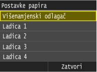 Nakon što registrirate standardne postavke ne prikazuje se zaslon za postavljanje papira ako je papir umetnut, a uvijek se koristi ista postavka. Ako umetnete drugi format ili vrstu papira bez promjene postavki papira, uređaj neće pravilno ispisivati. Da biste izbjegli taj problem, onemogućite standardnu postavku tako da u 3. koraku odaberete <Isključeno>, a zatim umetnete papir.