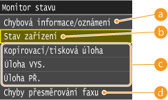 Stav úloh kopírování/tisku/odesílání/příjmu