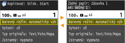 <Nastavení papíru>Zobrazí obrazovku pro zadání nastavení papíru. Vkládání papíru