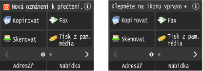 ![]() Když se zobrazí <Nová oznámení k přečtení.> nebo <Klepněte na ikonu vpravo ->>