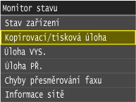 ![]() <Stav kop./tisk. úlohy>Zobrazí seznam dokumentů, které se zpracovávají, kopírují nebo čekají na zpracování.