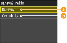 <Skenovat>  Zadejte místa určení nebo připojte paměťové zařízení USB <Barevný režim> Klepněte na barevný režim