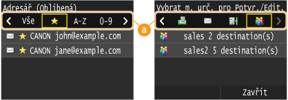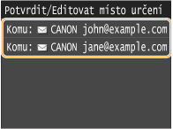Chcete-li snadno a rychle odstranit místa určení bez jejich vybírání ze seznamu míst určeníPřed výběrem možnosti <Potvrdit/Edit.> v kroku 1 můžete zadaná místa určení přepínat klepnutím na tlačítko