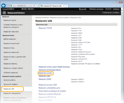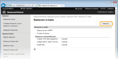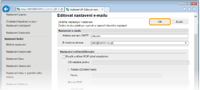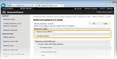 Pro konfiguraci podrobného nastavení e-mailu použijte vzdálené uživatelské rozhraní. Další informace o požadovaných nastaveních získáte od poskytovatele služeb Internetu nebo správce sítě.
